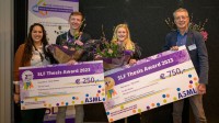 De SLF Afstudeerprijs werd dit jaar gesponsord door ASML en uit handen van Begona Alcorta ontving de winnaar de cheque van 750 euro én de dinerbon van 150 euro.